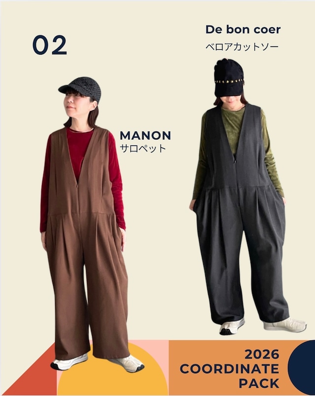 ■コクーンシルエットベロアカットソー ITEM №| 23206 PRICE| ¥13200 → ¥10500 COLOR| #70 カーキ #90 レッド MATERIAL| ナイロン50 レーヨン50 SIZE|F 肩幅38 袖丈57 バスト110 着丈69 ■スリータックワイドサロペット BRAND| MANON / マノン ITEM №| MNN-OP-117 PRICE| ¥29700→¥20500 COLOR| ブラウン グレイ MATERIAL| 表地:レーヨン34 ポリエステル34 ウール29 ポリウレタン3 裏地:コットン100 SIZE|F バスト104 ウエスト112 着丈134 股下56 MADE IN JAPAN ☐着用について スタッフ身長:158cm ☐採寸について 平置きで採寸の為、多少の誤差が出る場合がございます。 予めご了承くださいませ。 ☐在庫について 実店舗でも販売中の為タイムラグにより在庫が反映されず、 ご希望の商品がご用意出来ない場合がございます。 ご注文の商品の在庫を確認し次第、こちらよりメールをお送り致します。