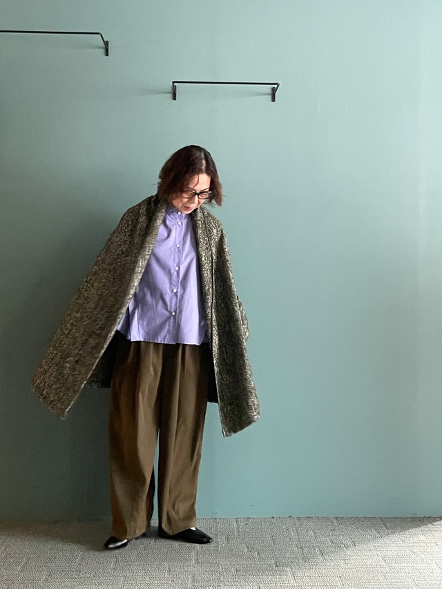 BRAND| SIWALY fluid / シワリーフルイド ITEM №| 524320 PRICE| 28000 +tax COLOR| ベージュ カーキ ブラック MATERIAL| 表時:ポリエステル100 裏地:ポリエステル100 別布:複合繊維52 ポリエステル48 SIZE|F 裄丈83 バスト110〜 着丈80 ■着用について スタッフ身長: ■採寸について 平置きで採寸の為、多少の誤差が出る場合がございます。 予めご了承くださいませ。 ■在庫について 実店舗でも販売中の為タイムラグにより在庫が反映されず、ご希望の商品がご用意出来ない場合がございます。 ご注文の商品の在庫を確認し次第、こちらよりメールをお送り致します。 .............................................................................. 【 SIWALY fluid 】 SIWALY fluidは2019年秋冬collectionにてスタートしたブランド。 コンセプトはSIMPLE HYBRID。 余計な装飾をしない、飾り立てない、装飾を最小限にとどめ、素材、カッティング、シルエットを引き立たせた服の中に異なるものを複合させる。 性別を問わず自由に着れる服、形を変えて着れる服など、fluid:流動性のあるブランドでありたい。このコンセプトに違わず、シンプルなデザインの中にどこか目を引くポイントがあるアイテムを多く生み出しています。 ..............................................................................