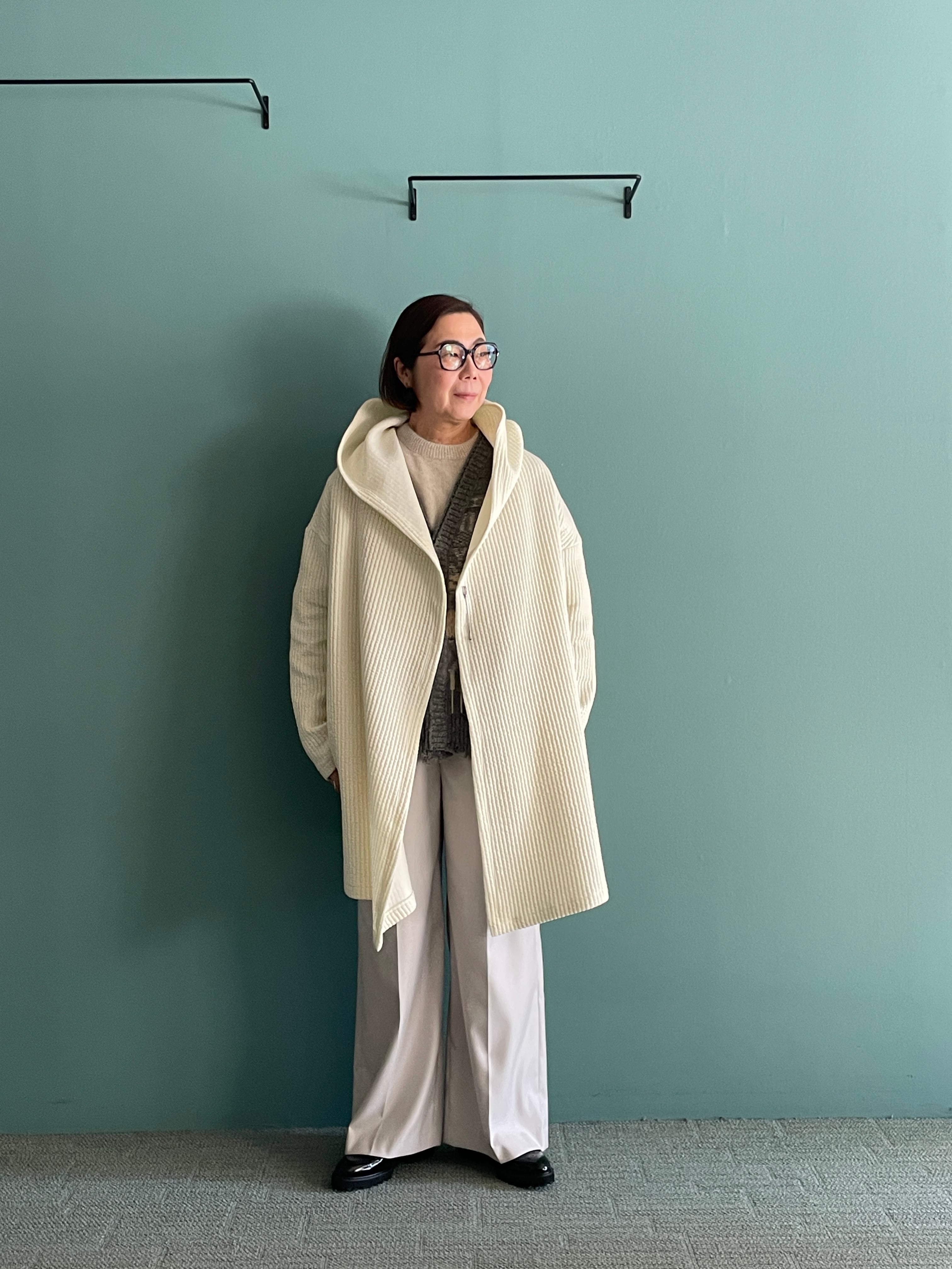 性別を問わず自由に着れる服、形を変えて着れる服など、fluid:流動性のあるブランドでありたい。このコンセプトに違わず、シンプルなデザインの中にどこか目を引くポイントがあるアイテムを多く生み出しています。