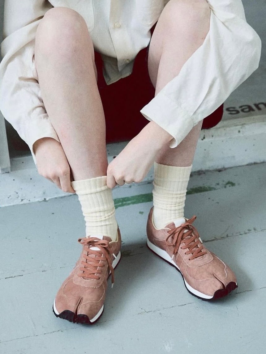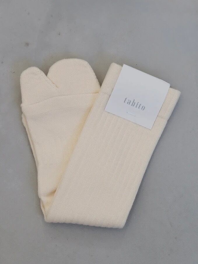 伝統的な足袋とナチュラルなカラーを組め合わせた靴下です。