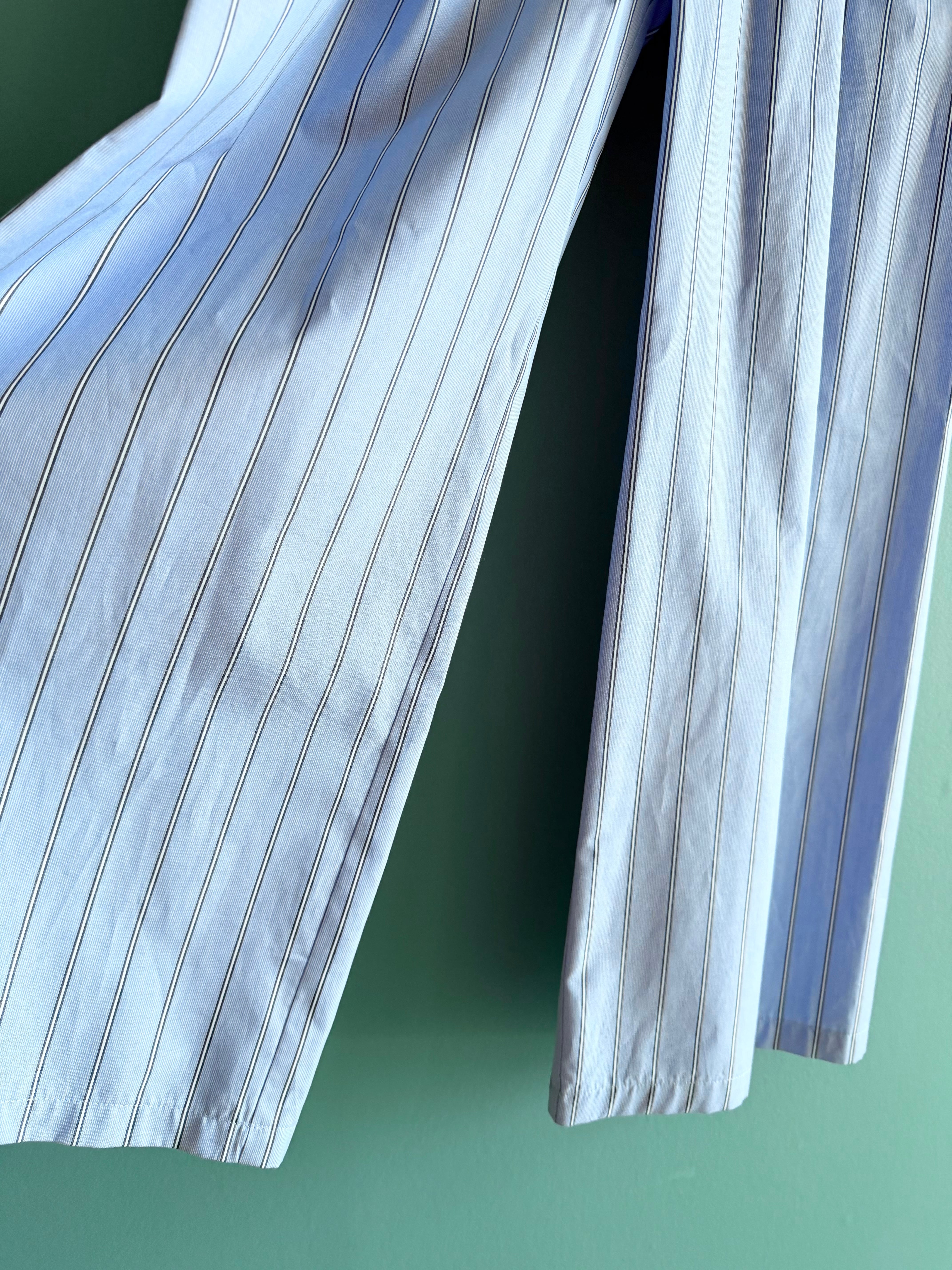 程よいコシとソフトな風合いのストライプの生地は極細の糸を使用することでクリアな標準が際立った上質なコットンブロードを使用。