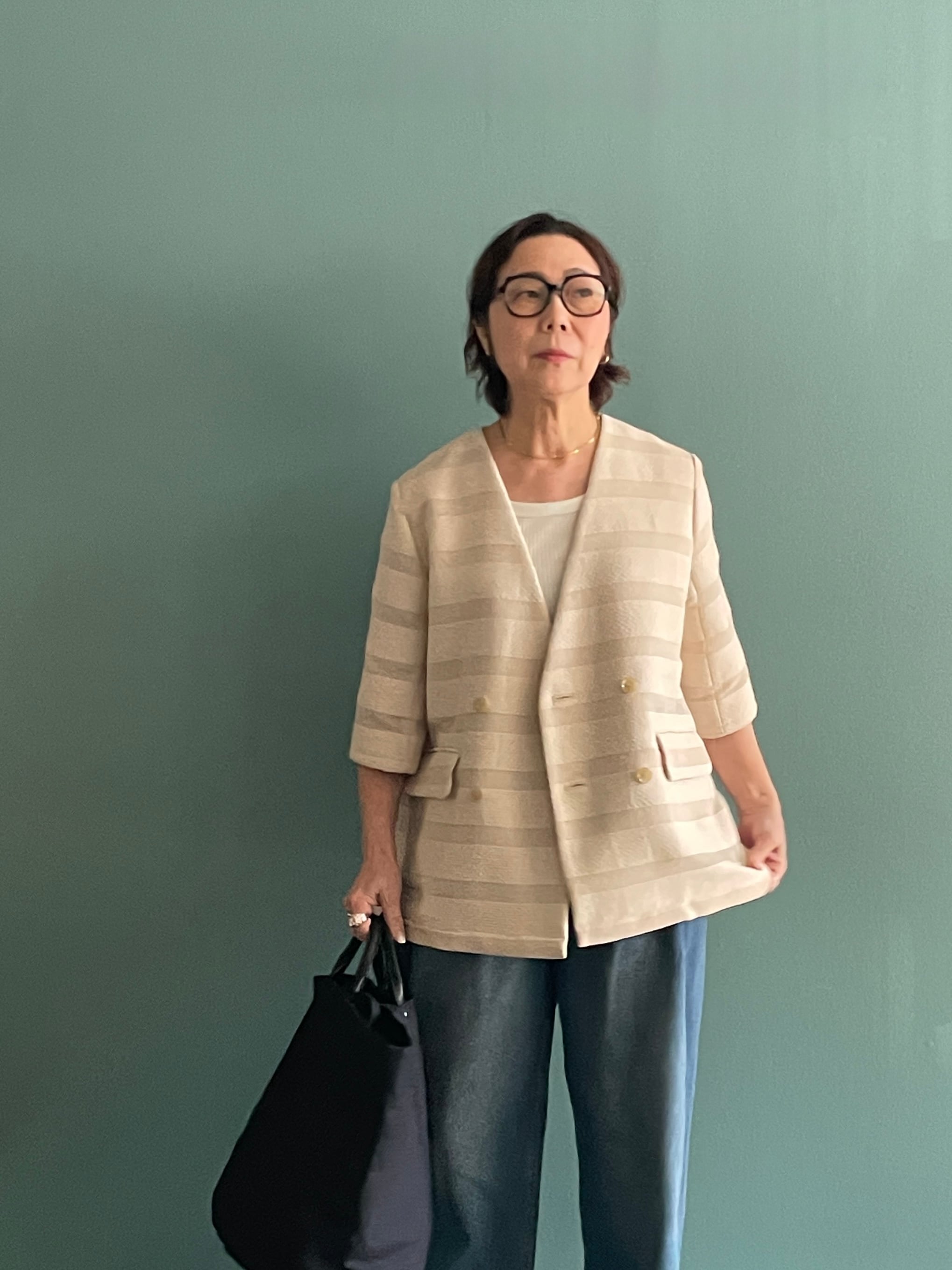 ノーカラーボーダージャケット【JUN OKAMOTO / VE-33085】