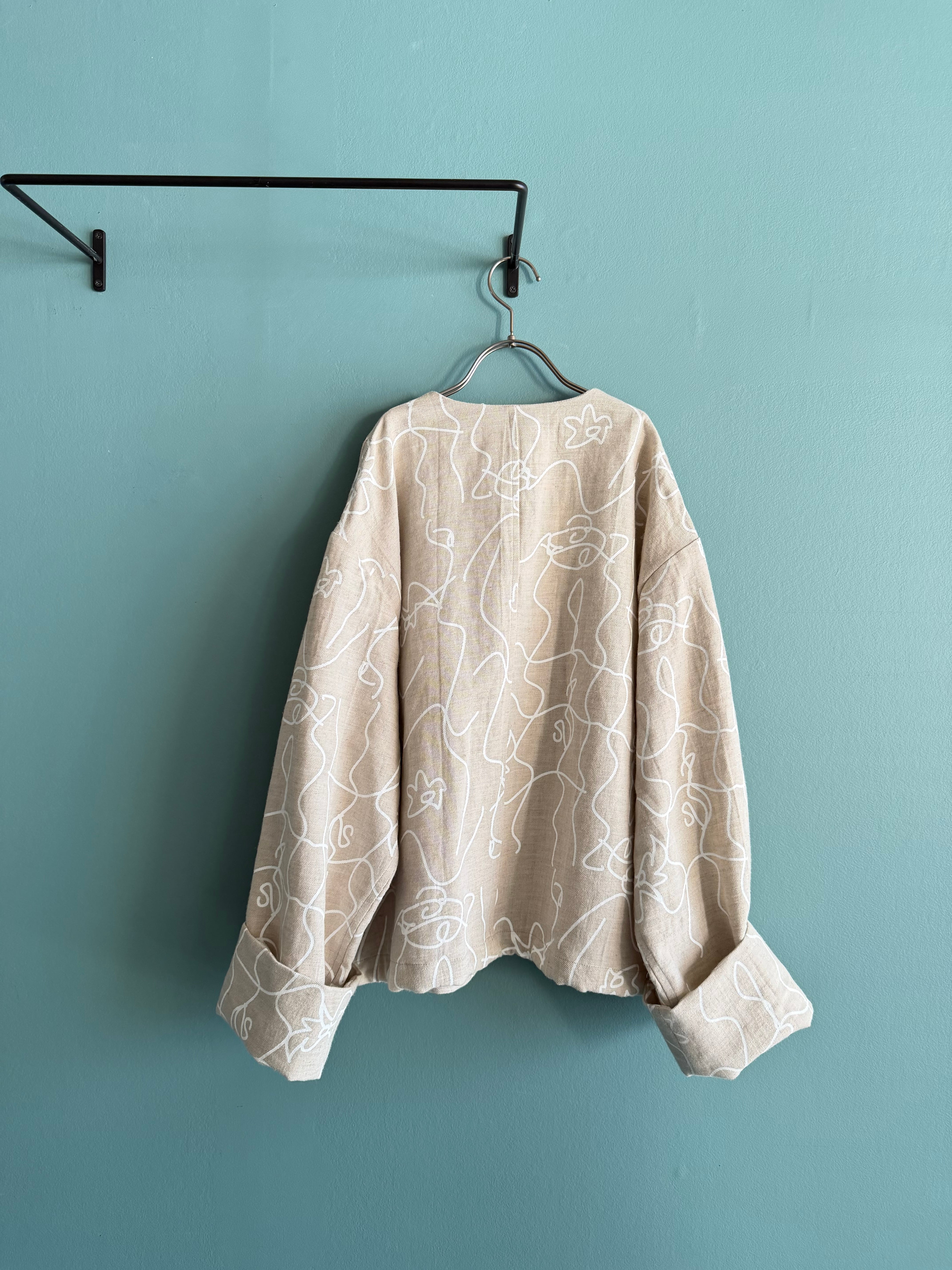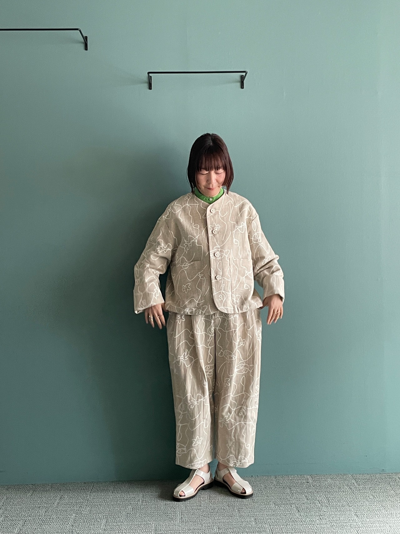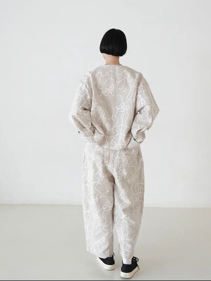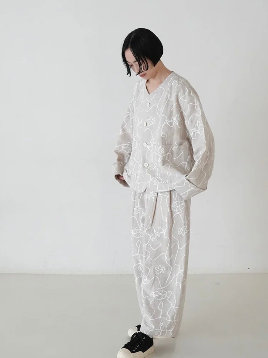 カジュアル感を持たせつつ、綿麻素材のオリジナルプリントが軽やかで表情豊かに仕上げています。
