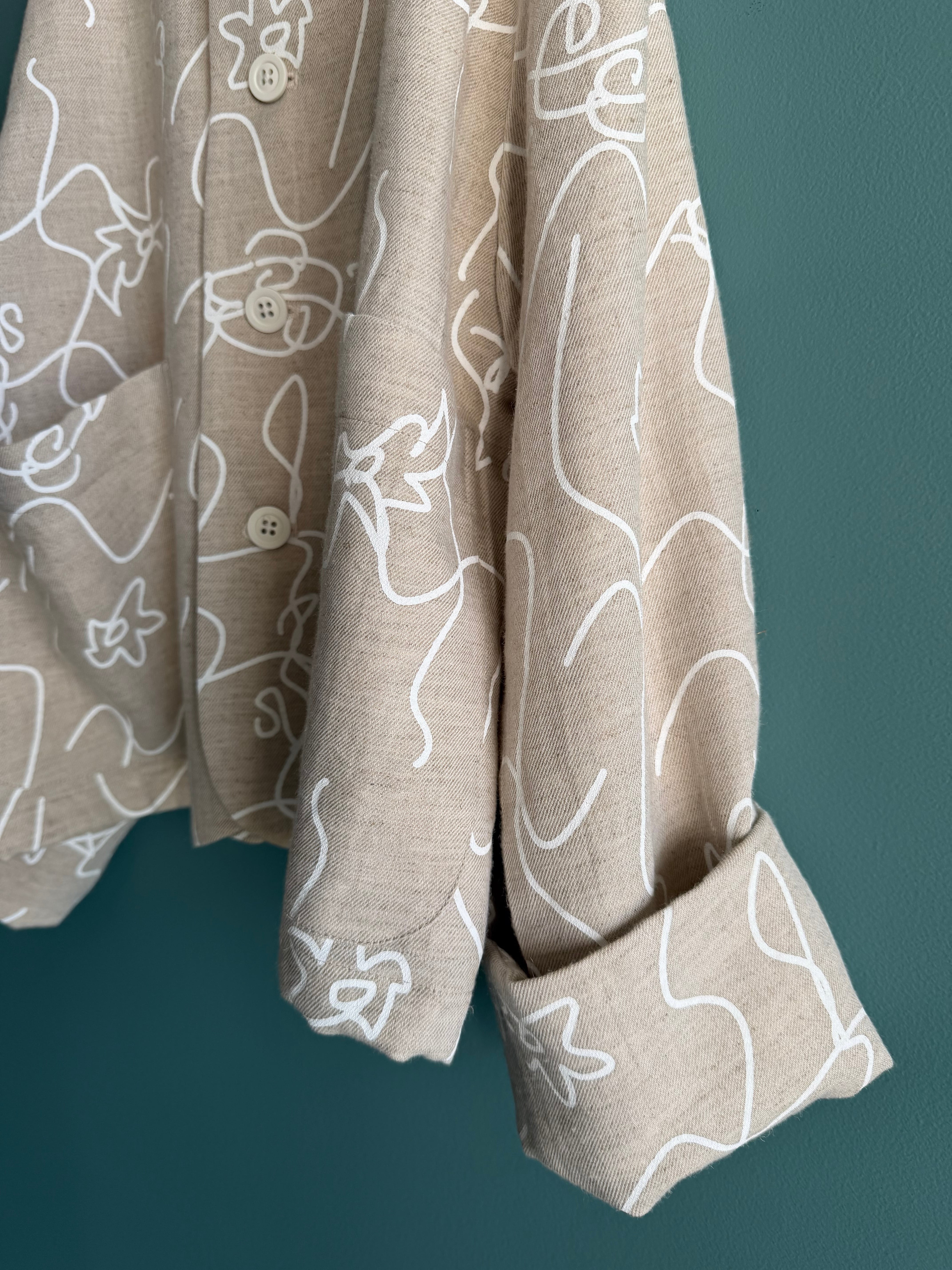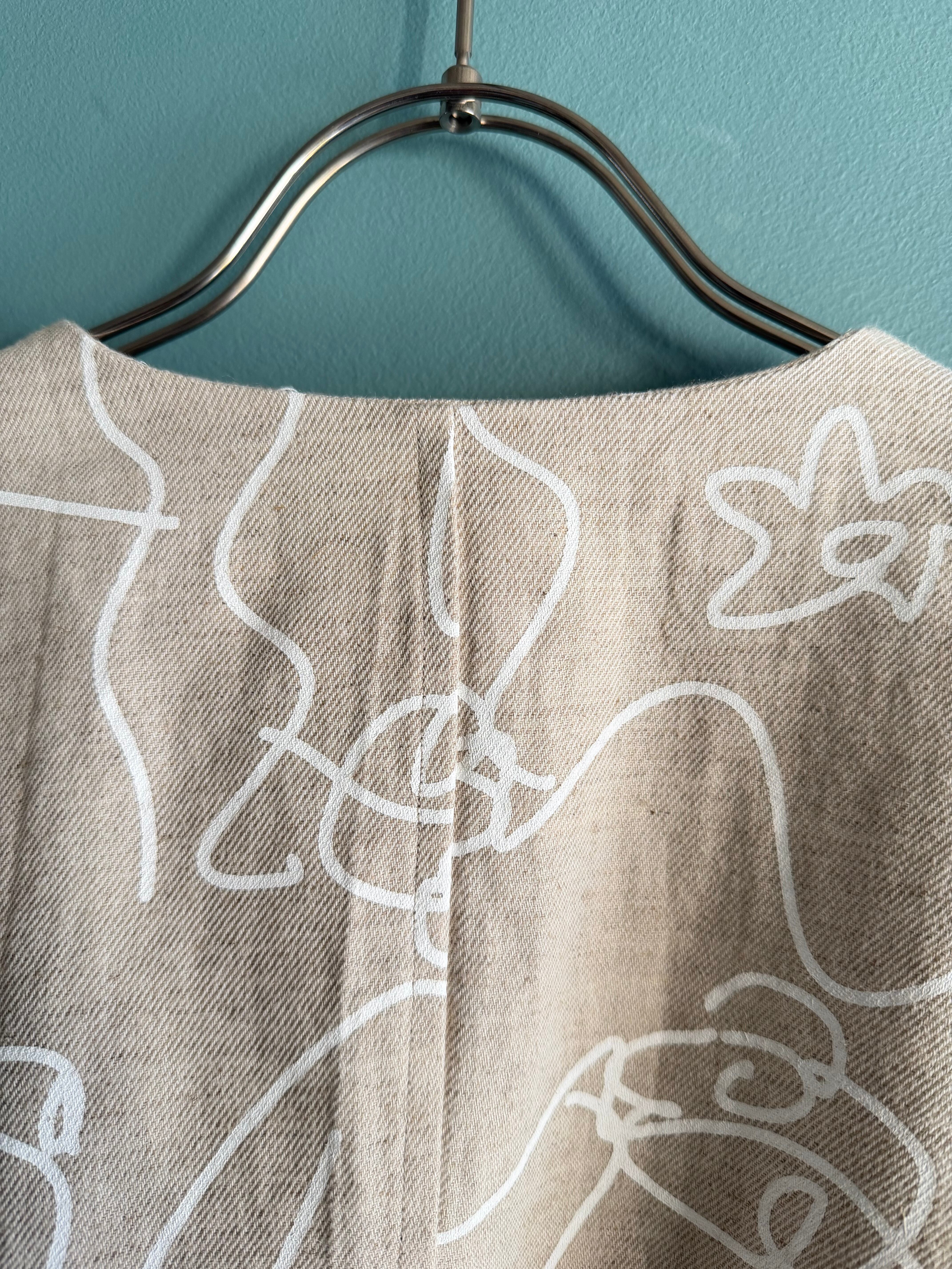生成り地に白いラインの花柄オリジナルプリント。
