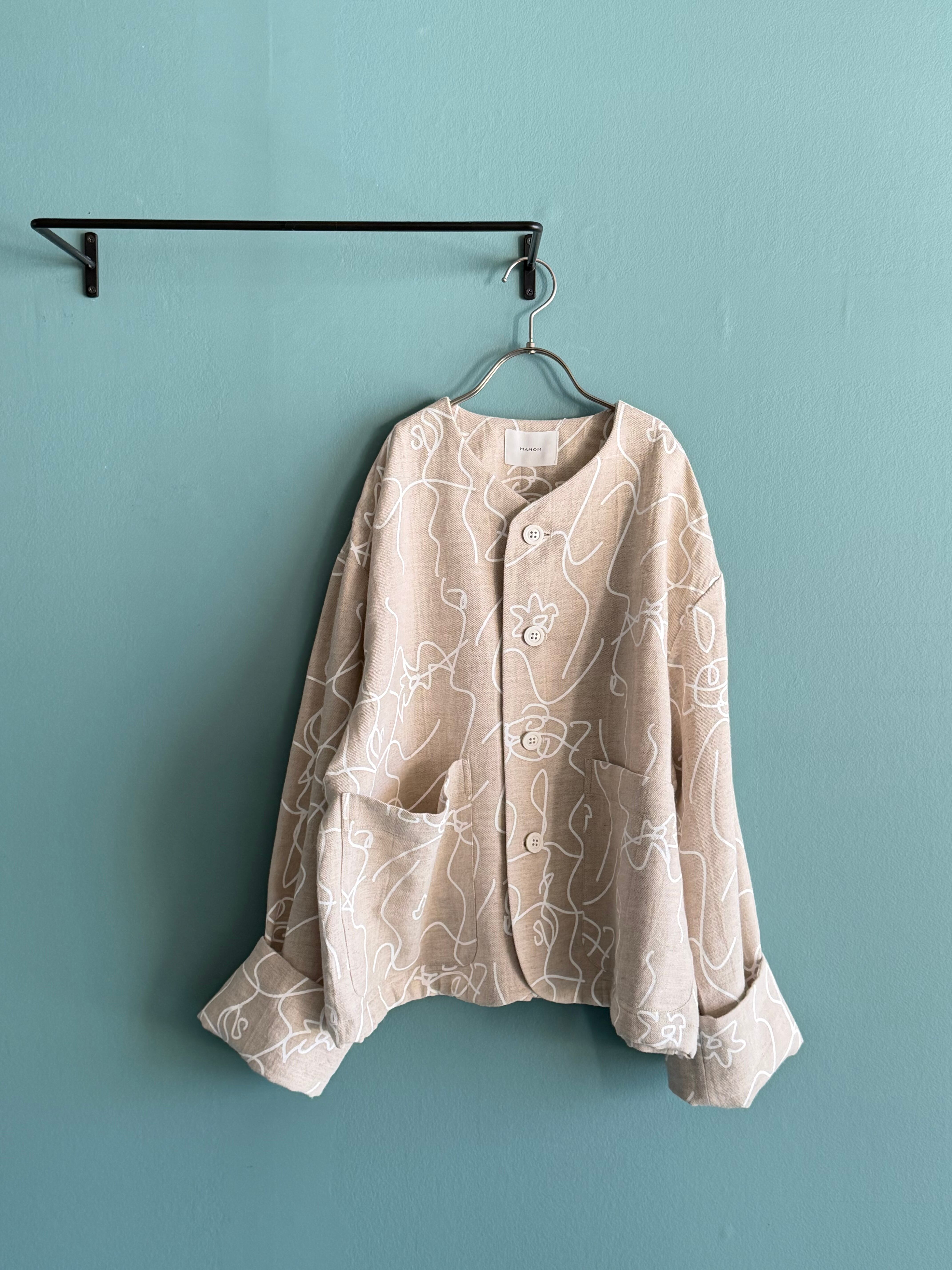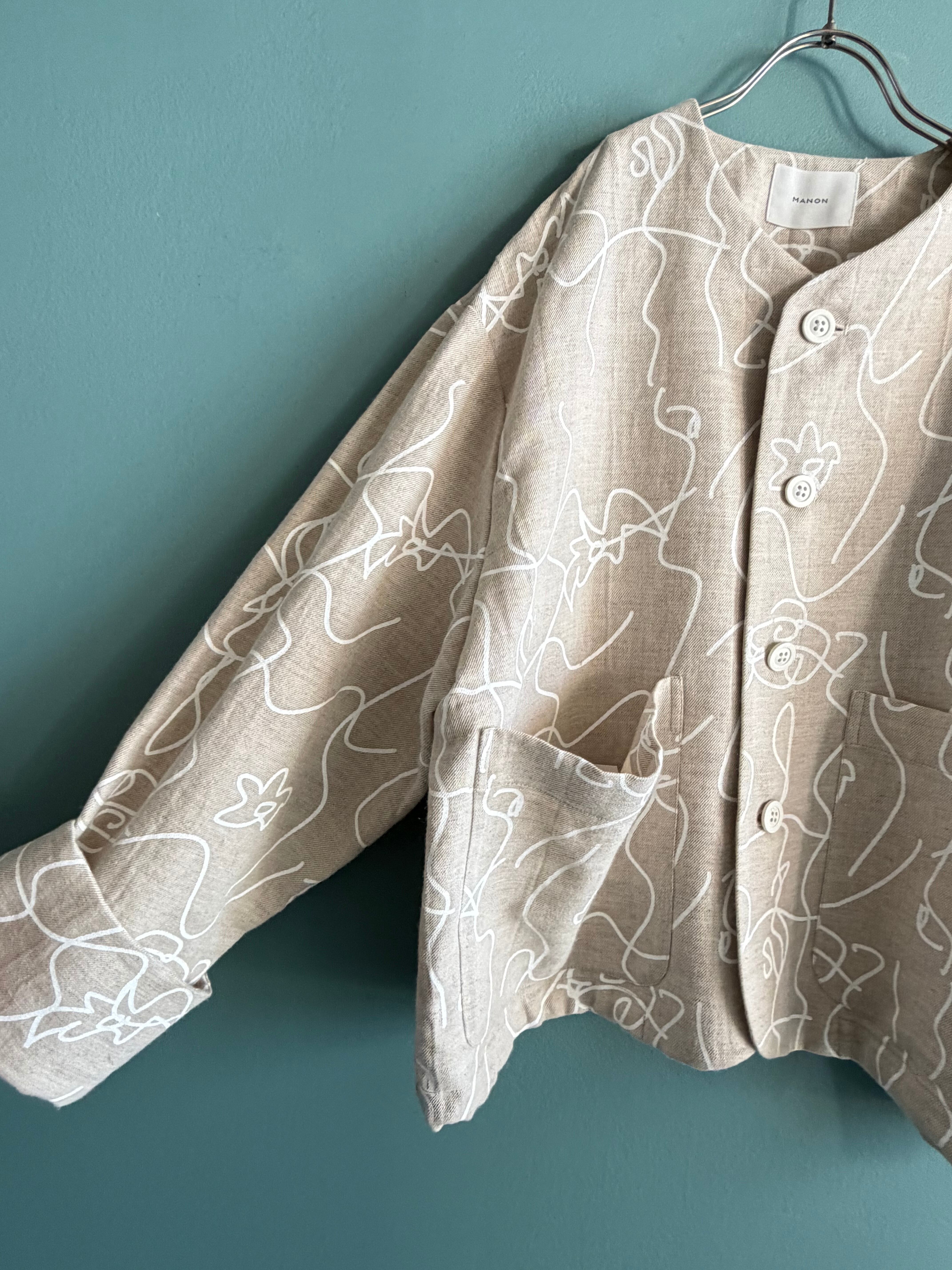 コットンリネンノーカラージャケット【MANON / JK-091】