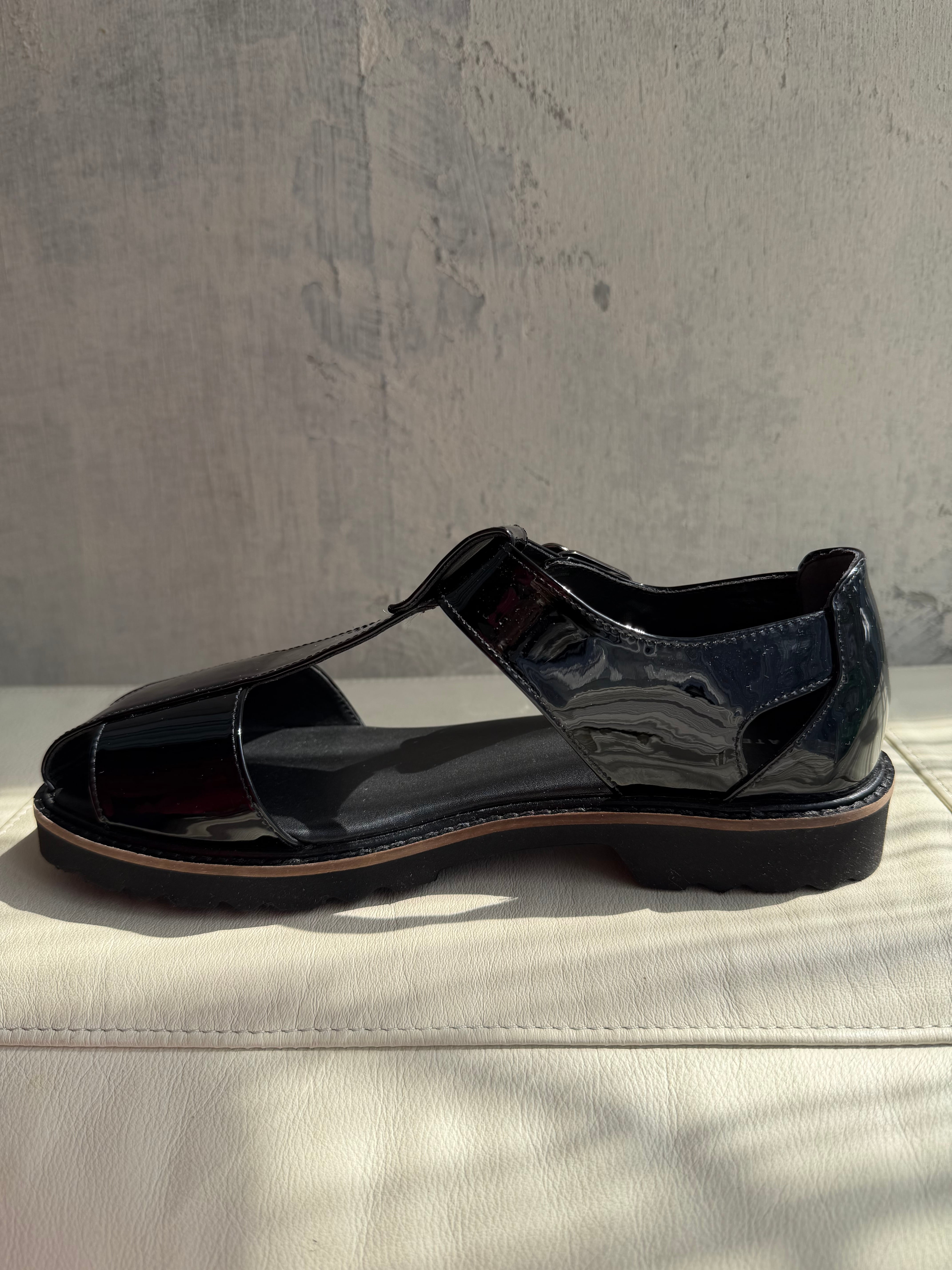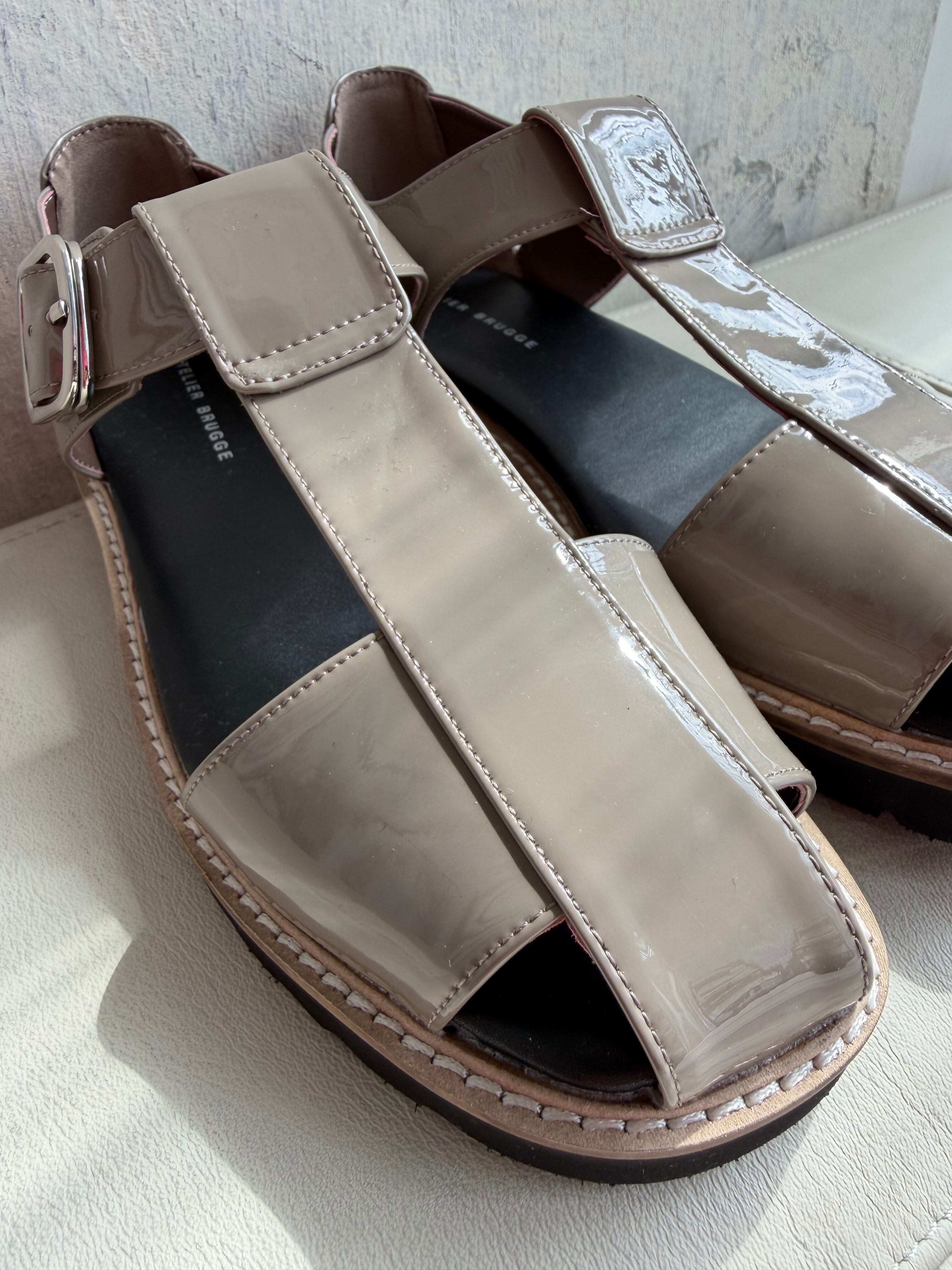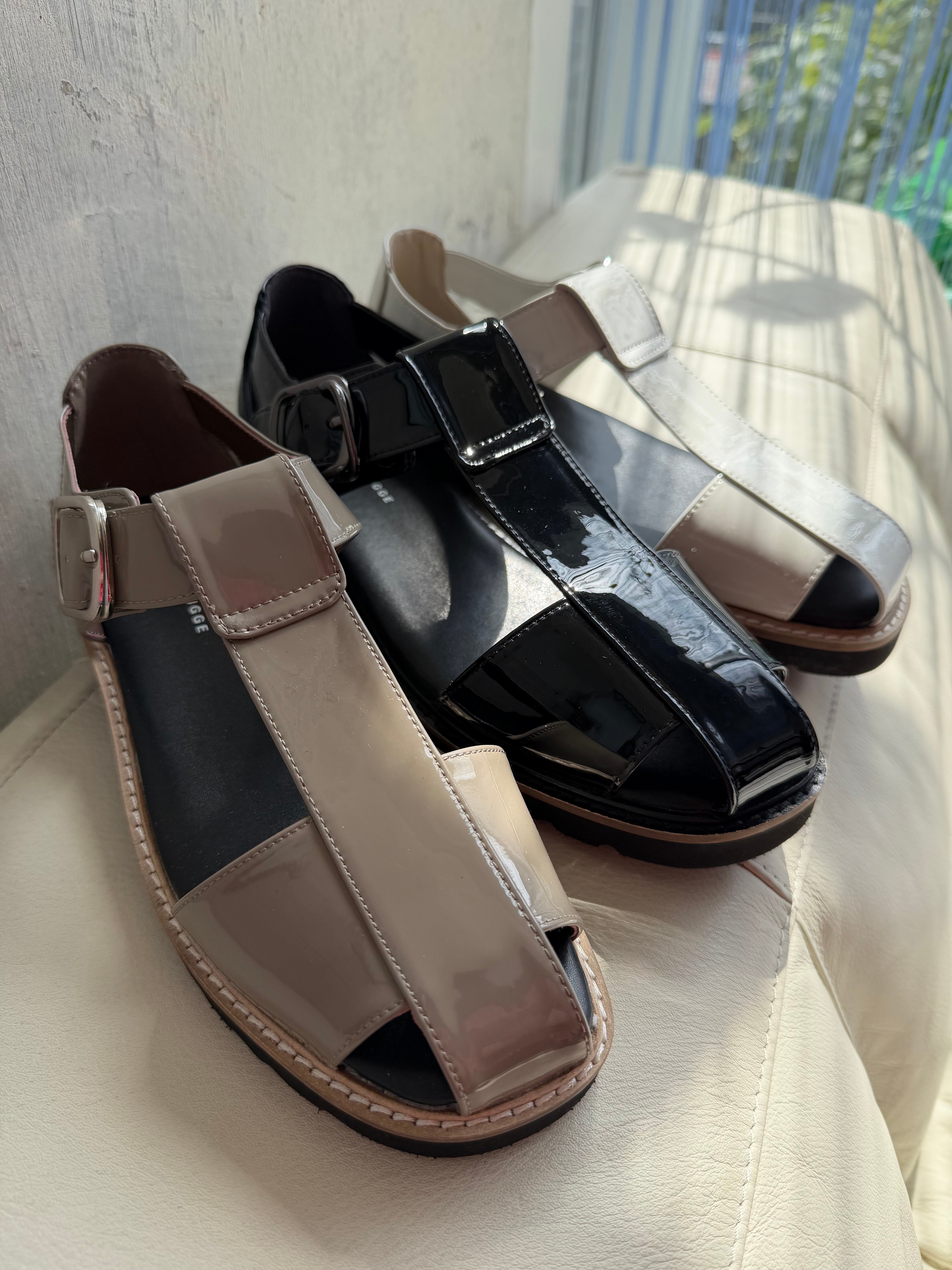 エナメルでもハードになりすぎないグルかサンダルは活躍の場が広い万能サンダル!