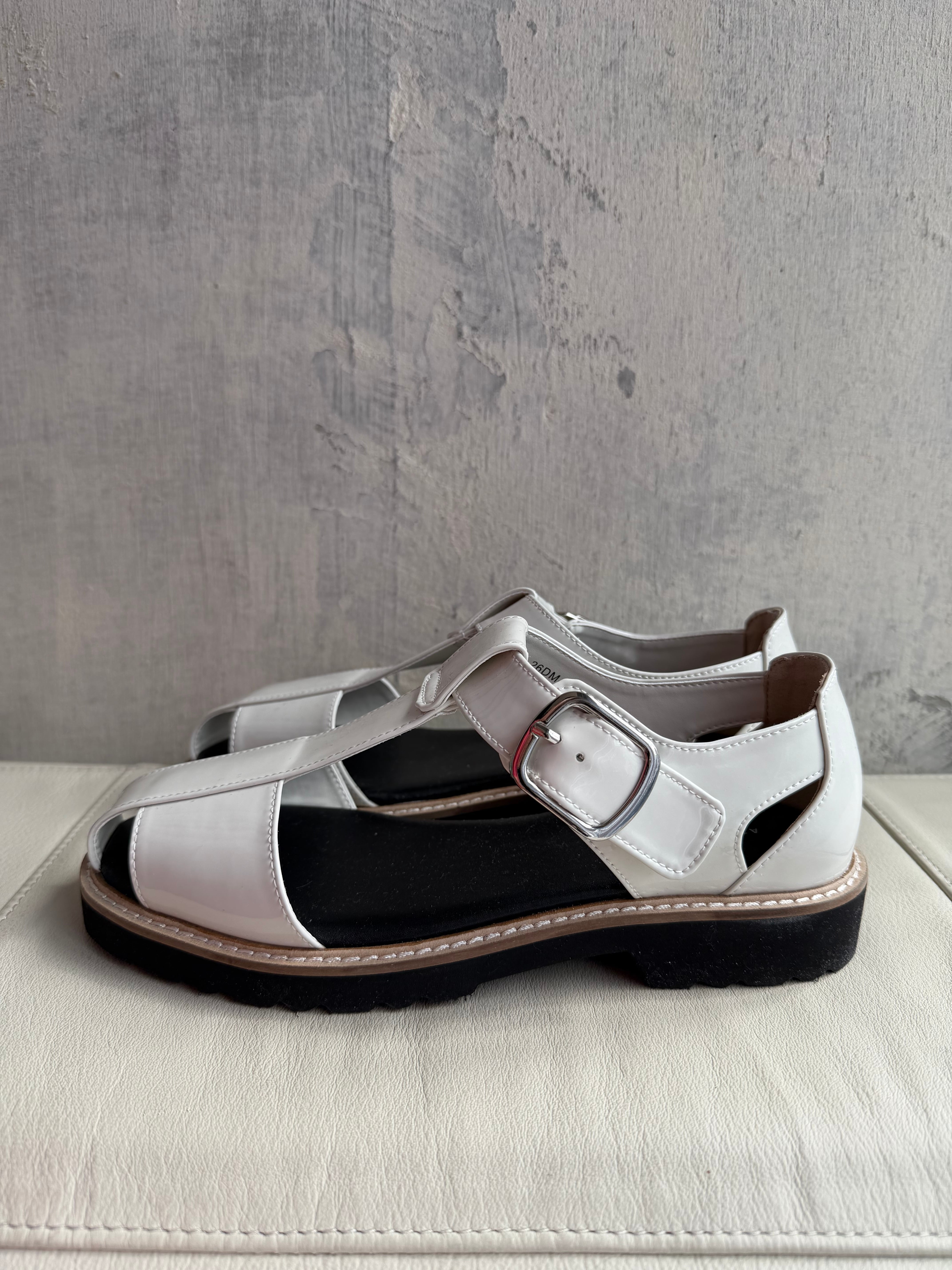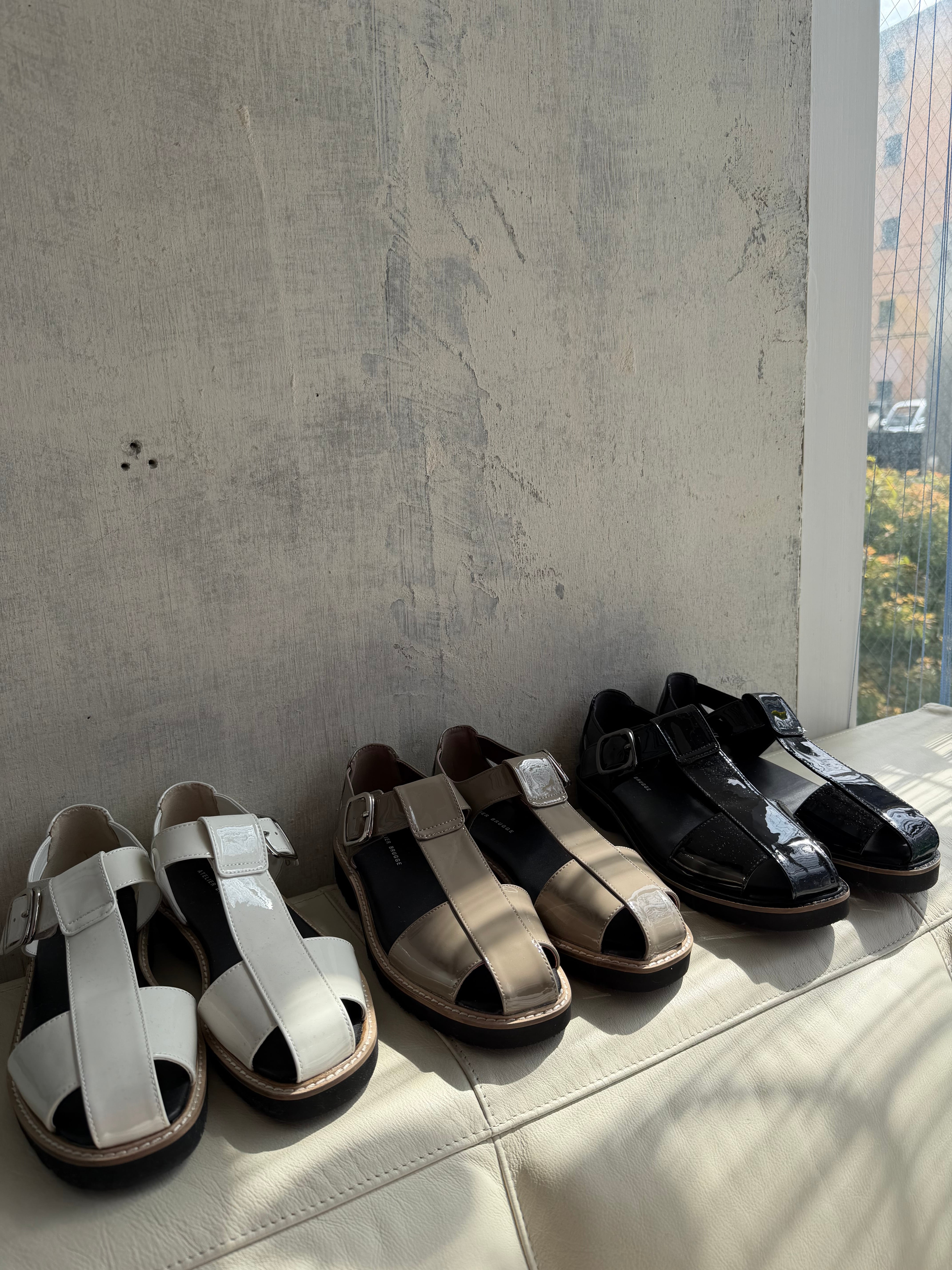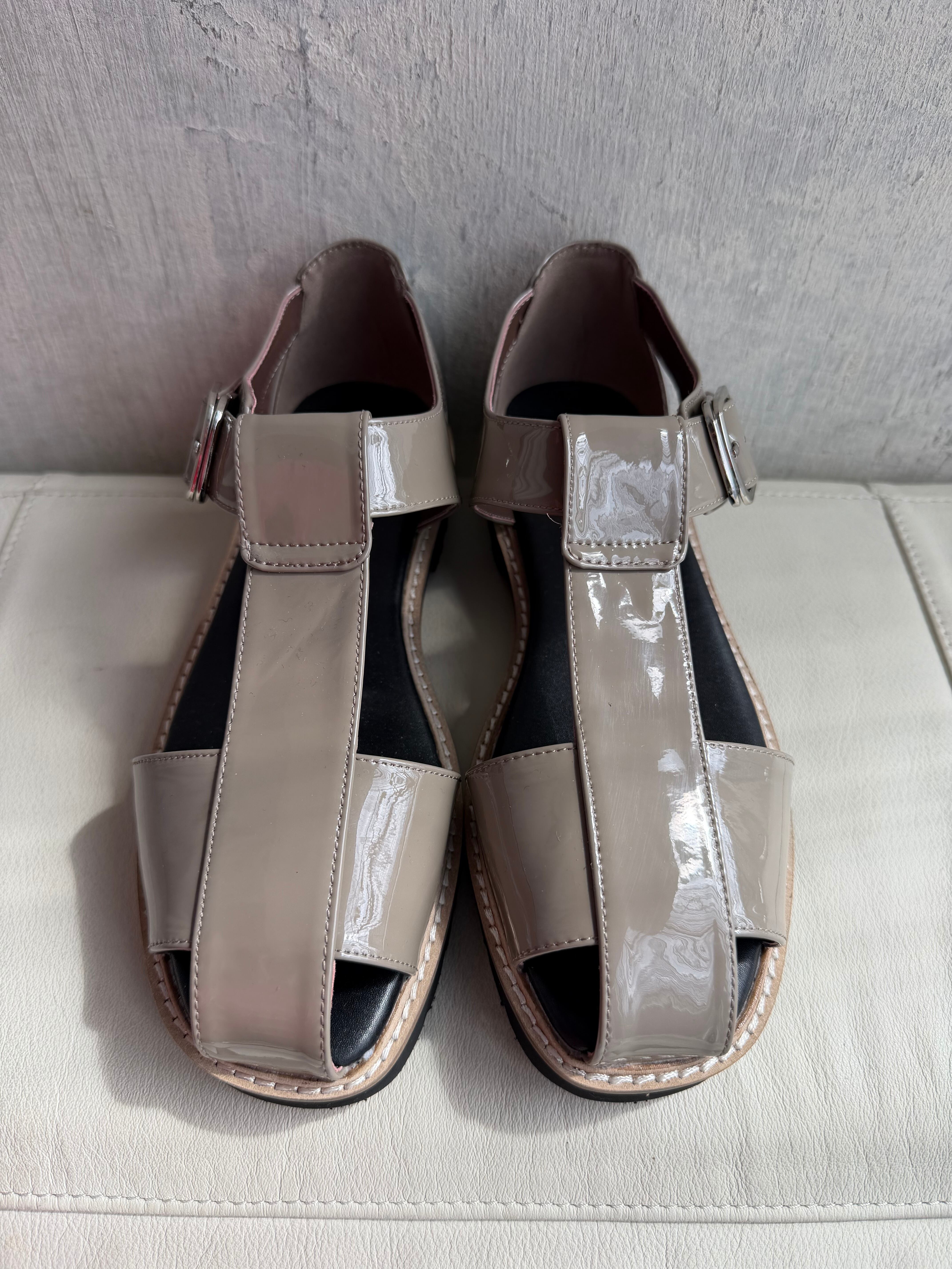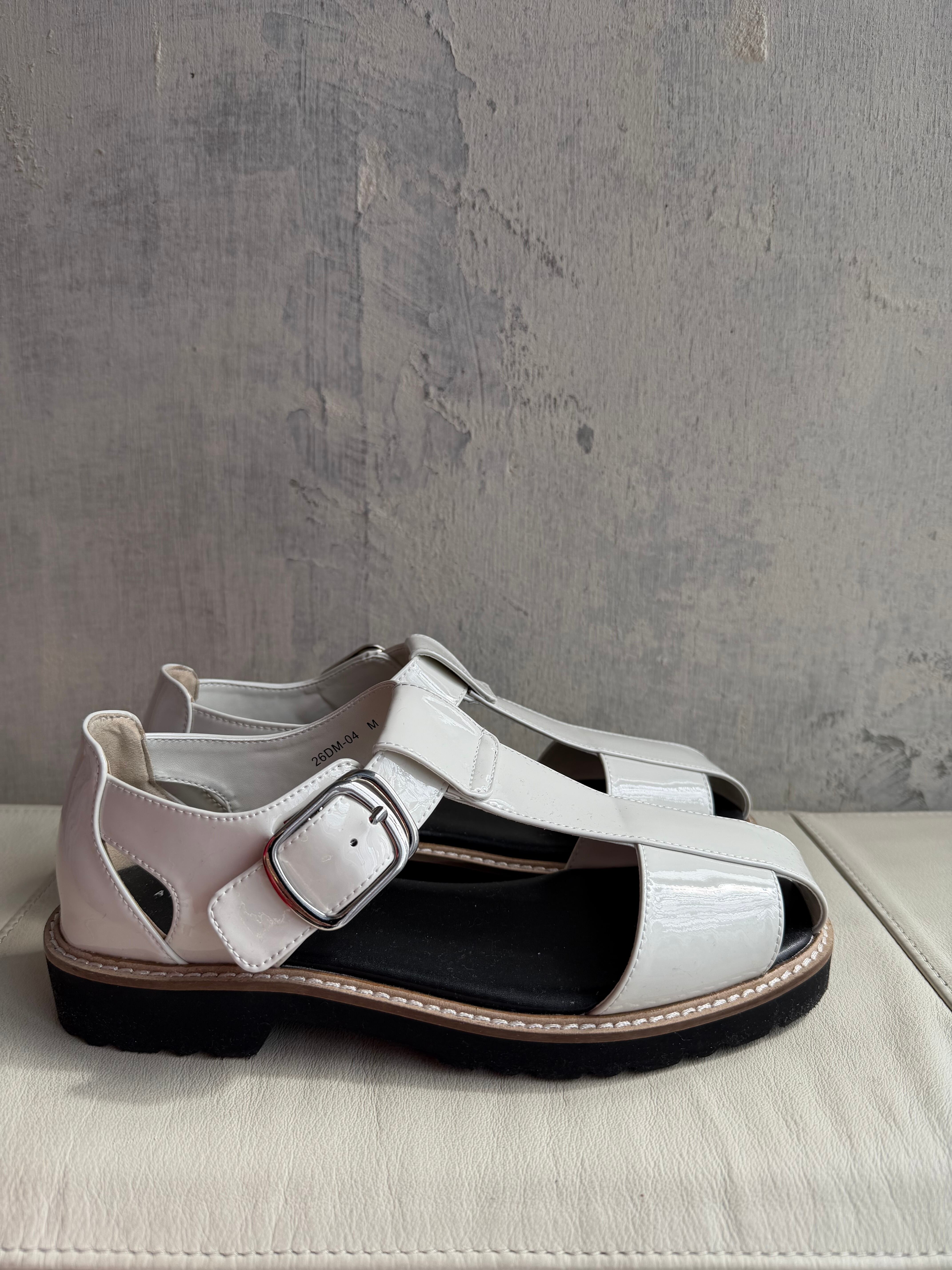 エナメルでもハードになりすぎないグルかサンダルは活躍の場が広い万能サンダル!