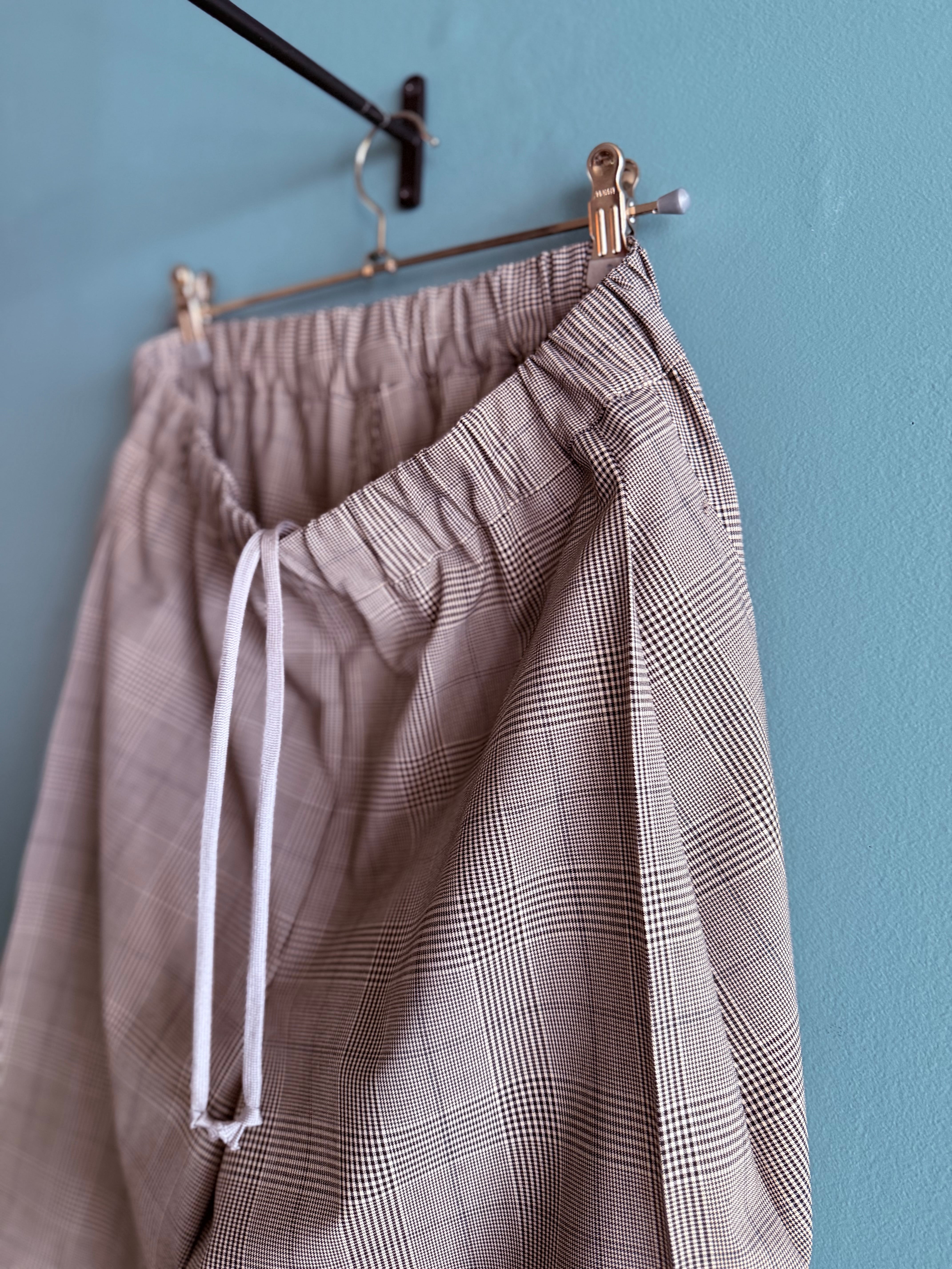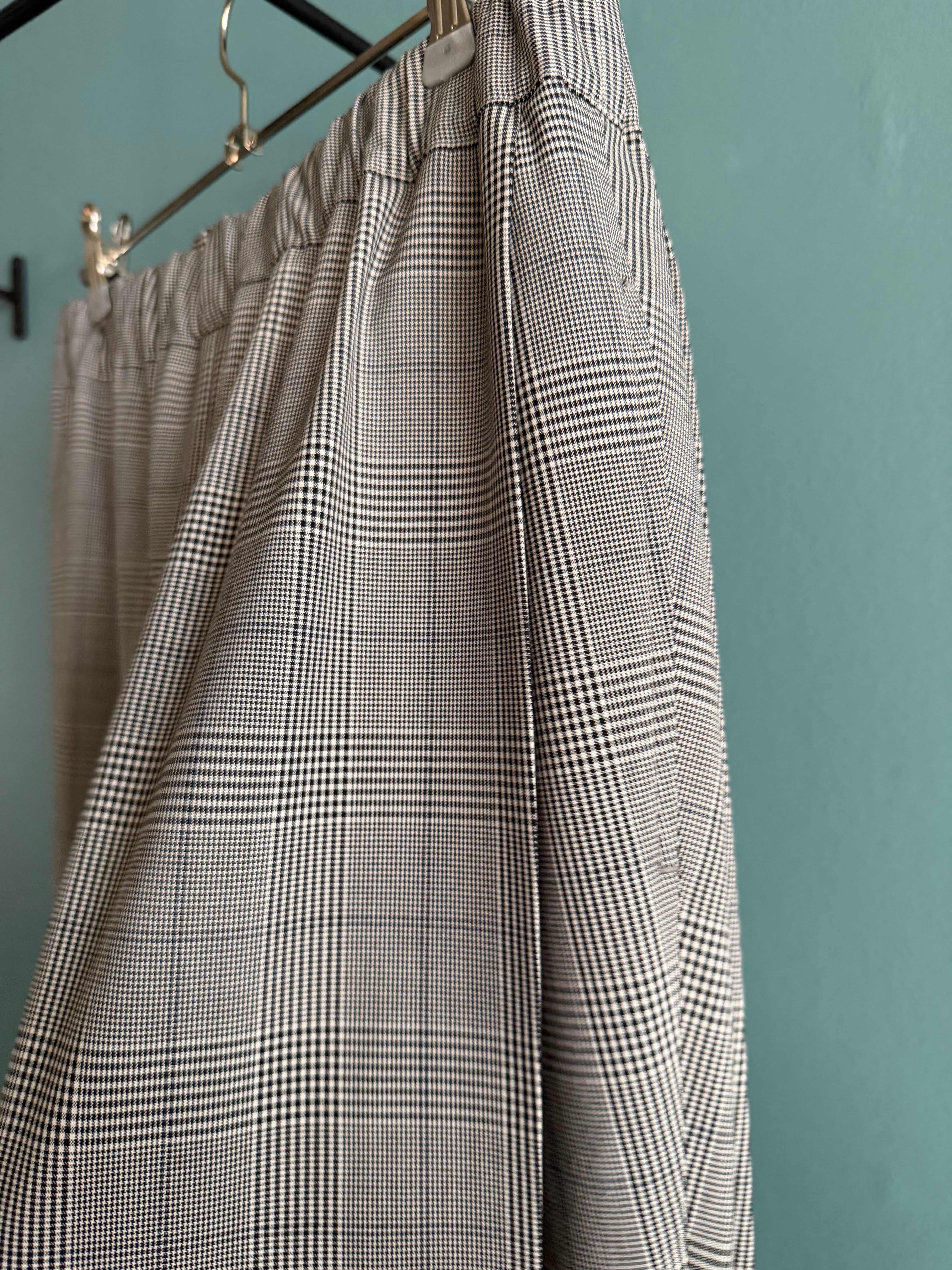 チェックとストライプはリサイクル糸を使用したTR素材でウォッシャブルでシワにもなりづらくさらっとした着用感です。