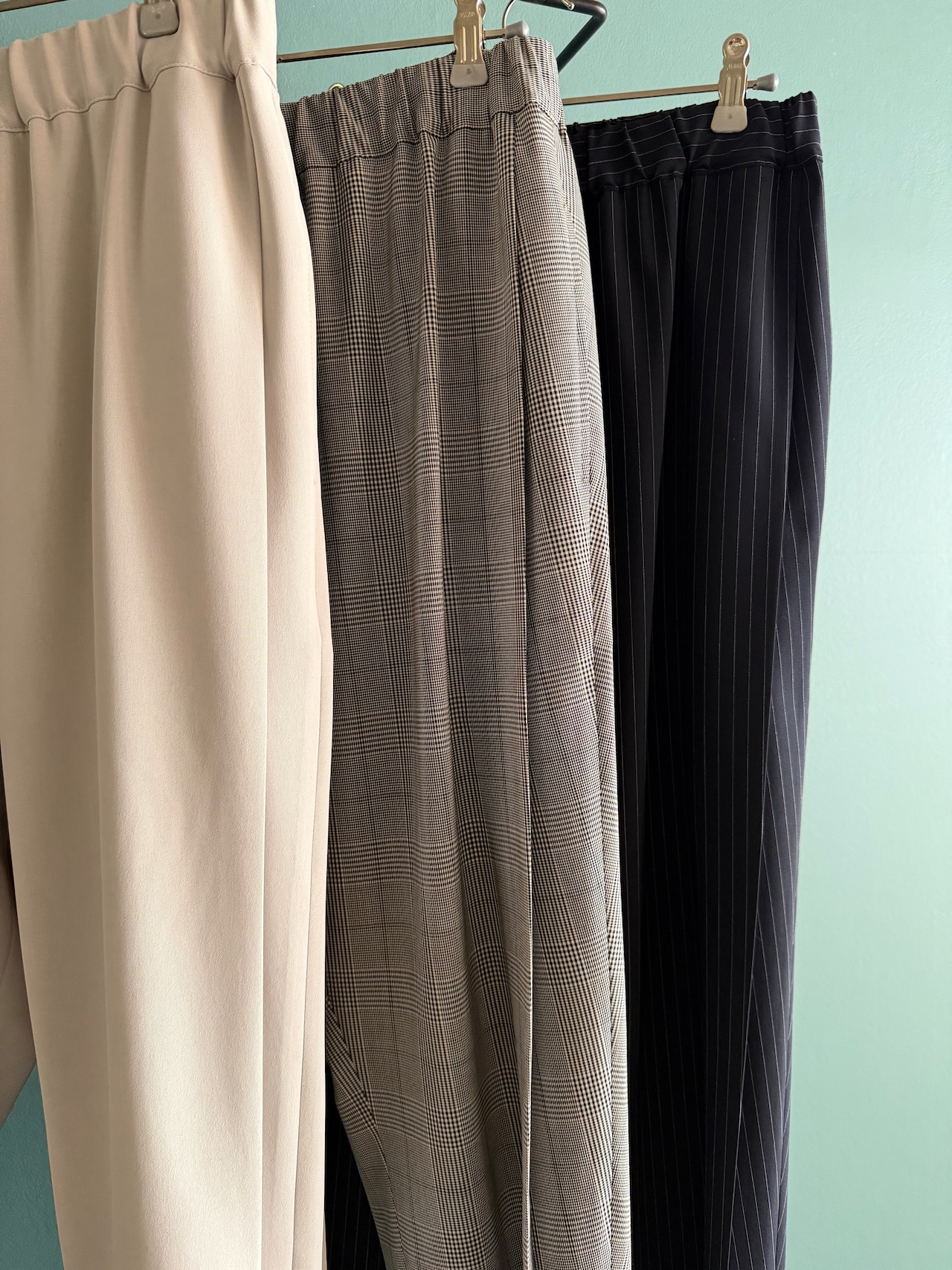 サイドタックのイージーパンツ。