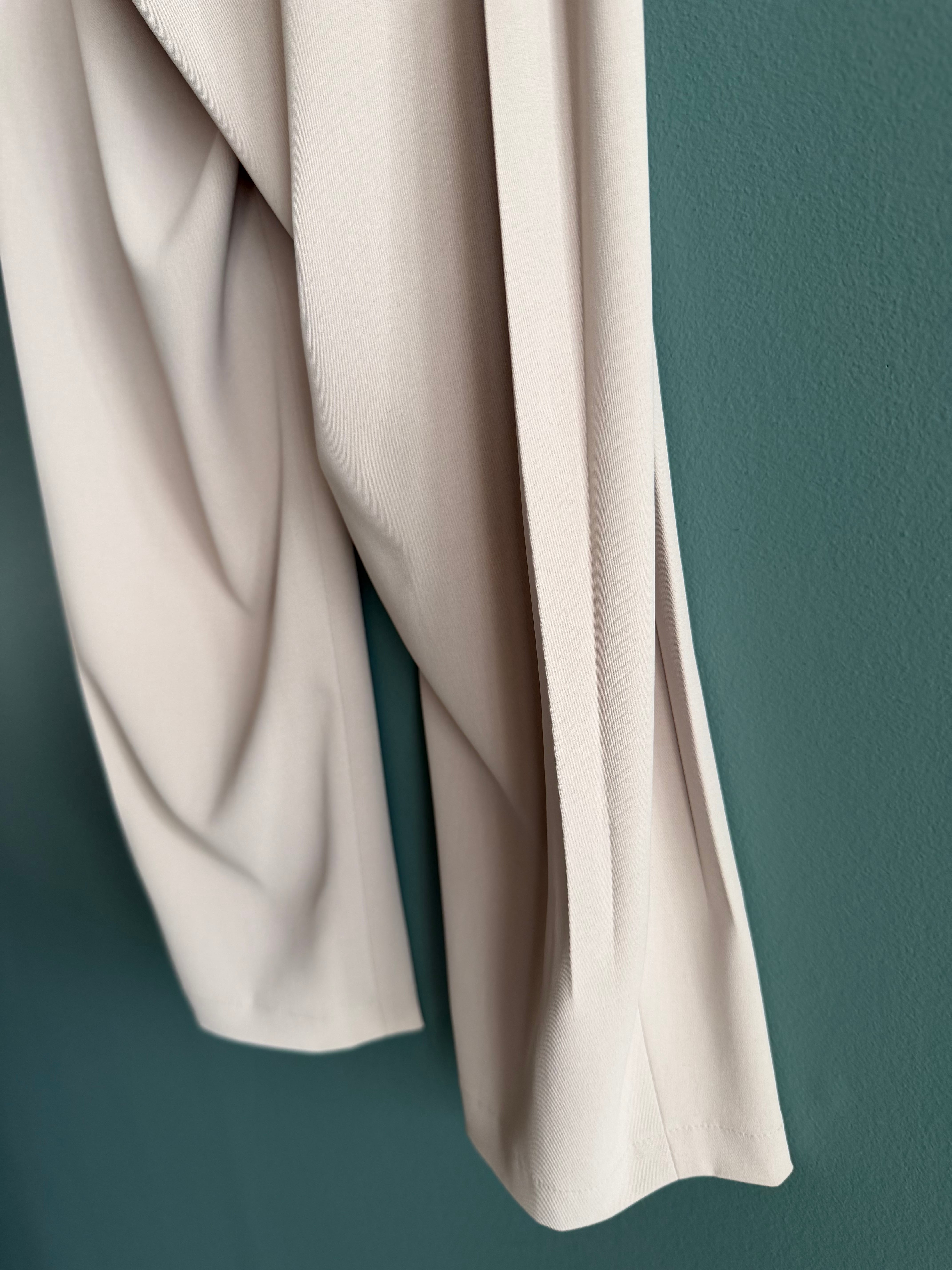 ラインのようにサイドに深く取ったタックがポイントで、少しくるぶしの見える丈感もスッキリ見せてくれます。
